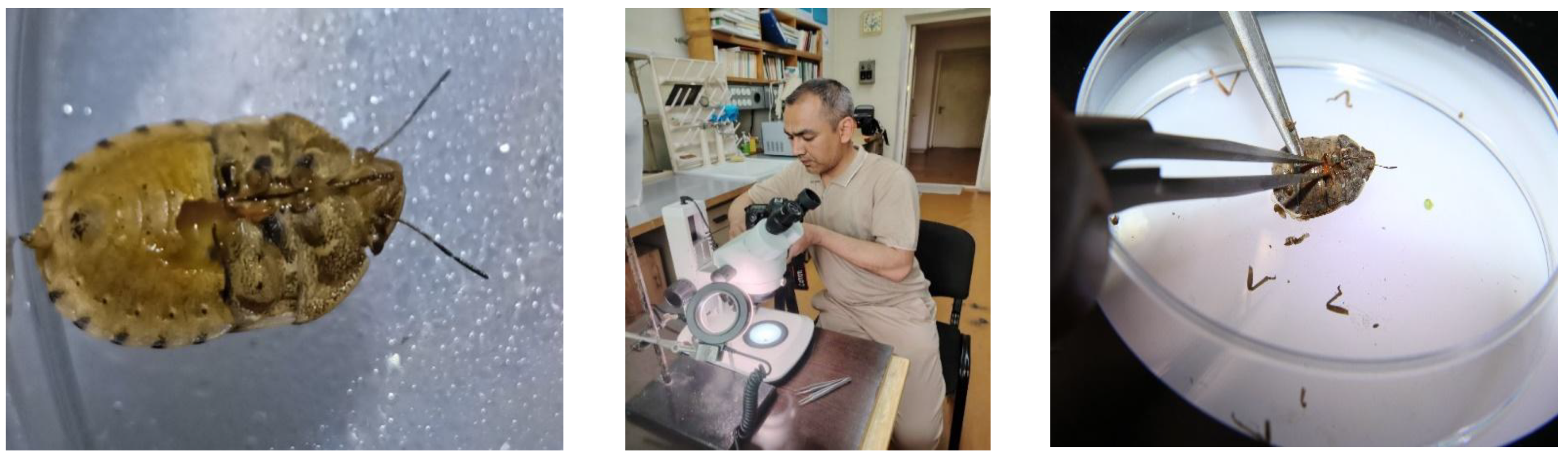 Frequent outbreaks of Pentatomidae and Scutelleridae in cereal crops highlight the urgent need for reliable phytosanitary assessment and the development of preventive monitoring tools. One promising approach is the identification of pheromones in Eurygaster and Aelia populations and the synthesis of highly attractive analogues. Such semiochemical tools would enable early detection of infestations and precise determination of pest distribution within different agroclimatic zones, particularly during vulnerable stages of crop development. Moreover, evaluating the influence of abiotic, biotic, and anthropogenic factors on the bioecological parameters of stink bug populations is critical for establishing sustainable pest control strategies.