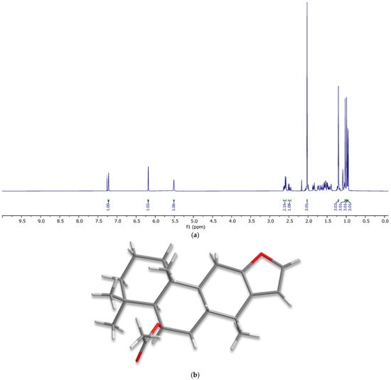 (a) 1H NMR spectrum of 6β-acetoxyvouacapane. (b) X-ray structure of 6β-acetoxyvouacapane.