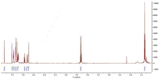 This behavior can be explained by considering the electronic delocalization of the 2H-flavene system, as well as Pearson’s Hard–Soft Acid–Base (HSAB) principles and both kinetic and thermodynamic factors, which favor condensation over addition. The formation of the Knoevenagel-type product was confirmed by 1H NMR (Figure 3), high-resolution mass spectrometry (HRMS), and X-ray diffraction.