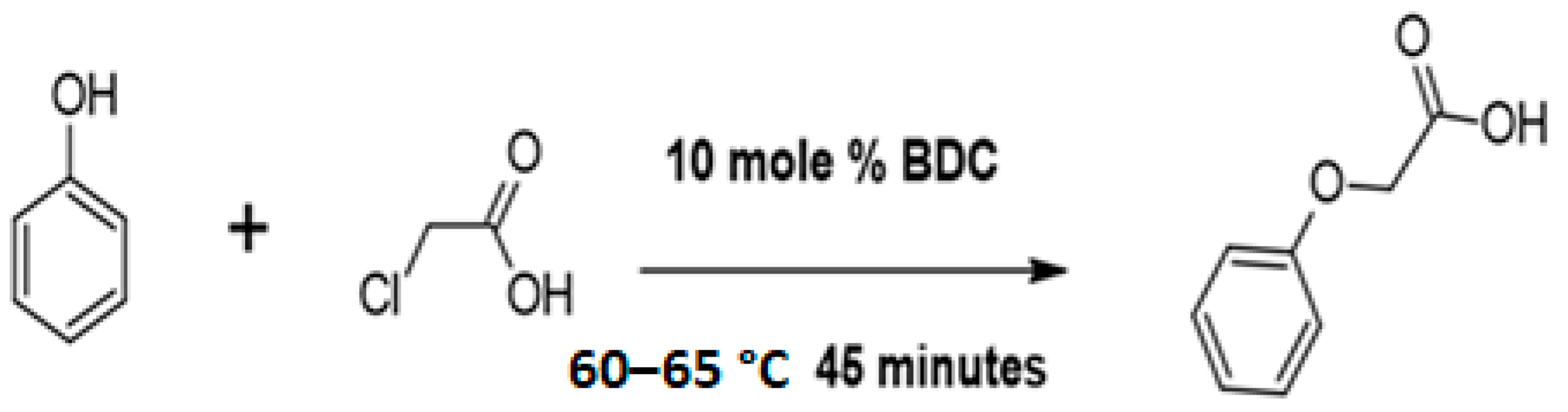 2.3. General Procedure for the Synthesis of Phenoxyacetic Acid Framework Using Biowaste-Derived Lignin-Based Heterogeneous Catalyst