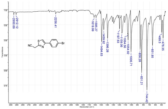 The FT–IR (ATR—Attenuated total reflectance mode) spectrum of 4-(4-bromophenyl)-2-cyanomethylthiazole 1a.