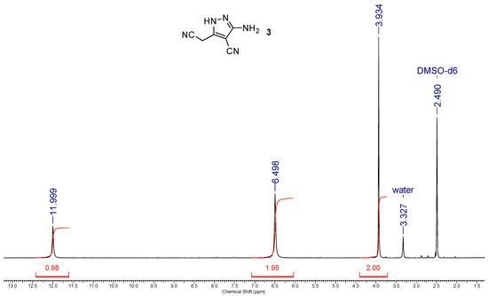 1H NMR spectrum (400 MHz, DMSO-d6) of 3-amino-5-(cyanomethyl)-1H-pyrazole-4-carbonitrile 3.
