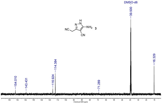 13C NMR spectrum (101 MHz, DMSO-d6) of 3-amino-5-(cyanomethyl)-1H-pyrazole-4-carbonitrile 3.