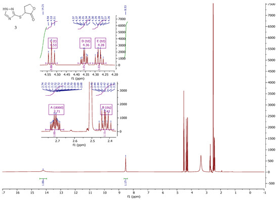 2.2. The Synthesis of 3-((1H-1,2,4-triazol-3-yl)thio)dihydrofuran-2(3H)-one (3)