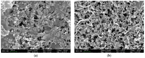MWCNT (outer diameter 40–60 nm, inner diameter 5–10 nm and 0.5–500 μm length) and polyaminobenzene sulfonic acid functionalized single-walled carbon nanotubes (f-SWCNT) (d × l is 1.1 nm × 0.5–1.0 μm) were purchased from Aldrich and Sigma-Aldrich (Steinheim, Germany), respectively. MWCNT (0.5 mg mL−1 homogeneous suspension in 1% sodium dodecylsulfate (Panreac, Barcelona, Spain) was prepared by sonication for 30 min in an ultrasonic bath (WiseClean WUC-A03H (DAIHAN Scientific Co., Ltd., Wonju-si, Korea). A homogeneous 1.0 mg mL−1 suspension of f-SWCNT was obtained by ultrasonic dispersion for 30 min in dimethylformamide.