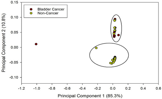 PCA output from BC and non-cancerous groups.