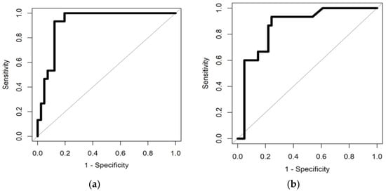 (a) illustrates ROC curve distinguishing BC from Non-cancerous group using Sparse Logistic Regression and (b) illustrates ROC curve distinguishing BC from Non-cancerous group using Random Forest classifier.
