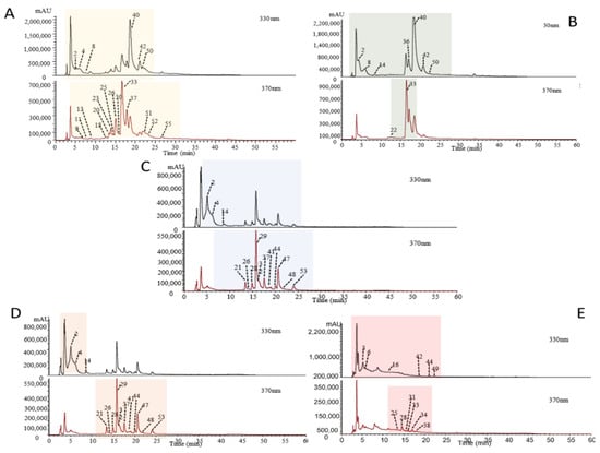 - Bessada, S.M.F.; Barreira, J.C.M.; Barros, L.; Ferreira, I.C.F.R.; Oliveira, M.B.P.P. Phenolic profile and antioxidant activity of Coleostephus myconis (L.) Rchb.f.: An underexploited and highly disseminated species. Ind. Crops Prod. 2016, 89, 45–51. [Google Scholar] [CrossRef] [Green Version]