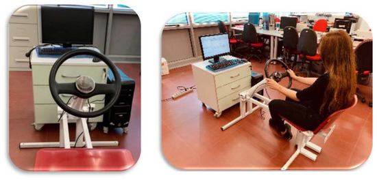 Pictures showing the location of the ethanol sensor inside the casing of an upper steering column (left) and the position of the driver during the test, simulating real driving conditions (right).