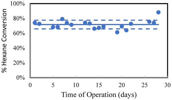 - Saucedo-Lucero, J.O.; Arriaga, S. Photocatalytic degradation of hexane vapors in batch and continuous systems using impregnated ZnO nanoparticles. Chem. Eng. J. 2013, 218, 358–367. [Google Scholar] [CrossRef]
