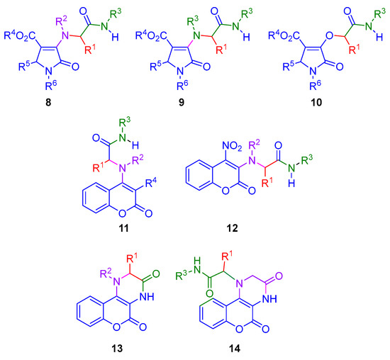 6. Neo, A.G.; Castellano, T.G.; Marcos, C.F. An easy synthesis of diversely functionalized 2H-chromenes and amido amines by an enol-Ugi reaction. Arkivoc 2017, 2017, 21–31. [Google Scholar] [CrossRef]