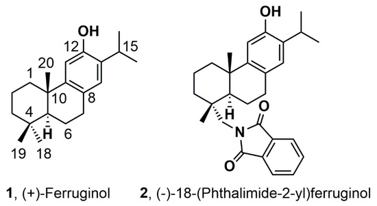 2.2.4. Synthesis of 12-Hydroxy-N-Phthaloyldehydroabietylamine or 18-(Phthalimide-2-yl)ferruginol (2)