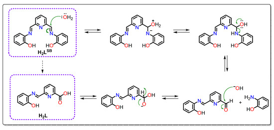 - Reeves, L.R. On the Mechanism, substituent effects, and intramolecular catalysis in Schiff base hydrolysis. J. Org. Chem. 1965, 9, 3129–3135. [Google Scholar] [CrossRef]