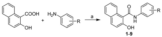 Synthesis of 2-hydroxy-N-arylnaphthalene-1-carboxanilides 1–9. Reagents and conditions: (a) PCl3, chlorobenzene, MW, 45 min.