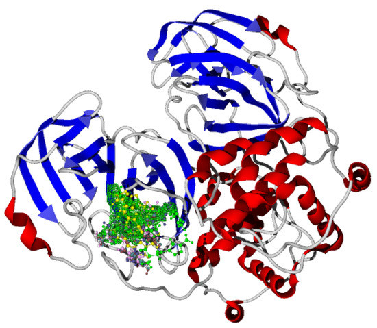 Once molecular docking was performed on the active site of the SARS-CoV-2-MPro, which has been reported for our research group [1,2,3], the studied molecules were positioned as Figure 3 shows.