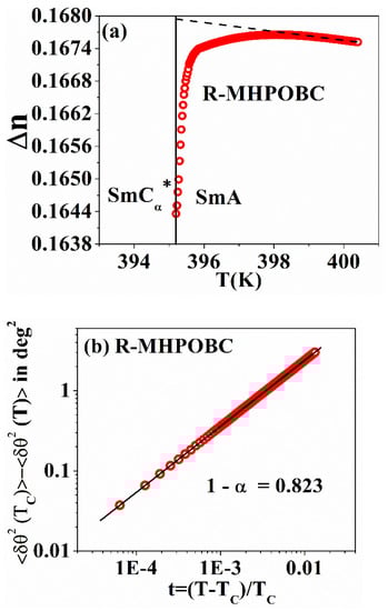 ACα* is the reduced temperature. This shows a straightforward comparison between the critical exponents, as obtained from specific heat-capacity and optical birefringence experiments. In this work, the value of (1−