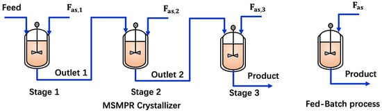 The setup of fed-batch crystallizer and multistage MSMPR crystallizer.