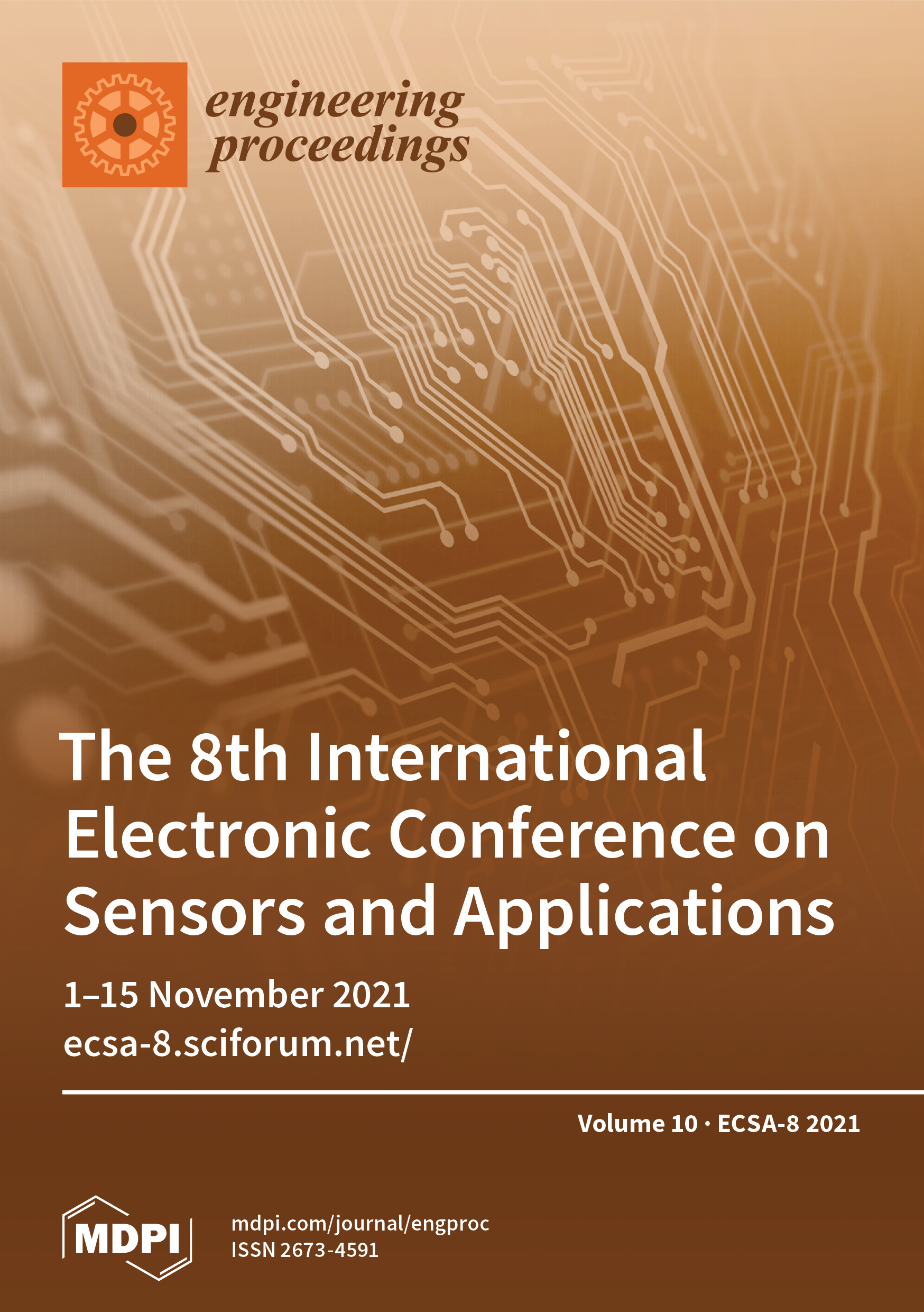Cover Story: This issue of Engineering Proceedings gathers papers presented at the 8th International Electronic Conference on Sensors and Applications (ECSA-8), held online on 1–15 November 2021. Video recordings of the sessions and open access to papers and presentations can be found online at https://ecsa-8.sciforum.net/. ECSA-8 collected contributions concerning four thematic areas where sensors are changing science (Chemo- and Biosensors, Physical Sensors, Sensor Networks, Applications) and eight focus area sessions (Structural Health Monitoring Technologies and Sensor Networks, Wearable Sensors, Smart Cities, Optical Sensors, Sensing and Imaging, Positioning and Navigation, Sensing for Robotics and Automation and Ultrasonic Monitoring of Fiber Metal Laminates). We look forward to collaborating again next year. - Issues are regarded as officially published after their release is announced to the table of contents alert mailing list .