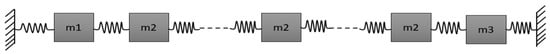 The proposed method, which uses PCA and AMD to identify the modal frequencies, is applied to a 10-DOF model for validating the technique. The twelve DOF model is excited with an initial velocity at the twelfth DOF, and the output is collected at all the 10-channels in terms of displacement y(t). The 10-DOF system is represented as masses connected with springs, as shown in Figure 2.