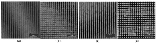 SEM images of the configuration (a) 1D p-535, (b) 2D p-535, (c) 1D p-260 and, (d) 2D p-260.