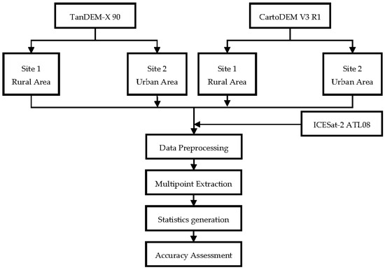 Estimation of Building Heights and DEM Accuracy Assessment Using ICESat-2 Data Products †
