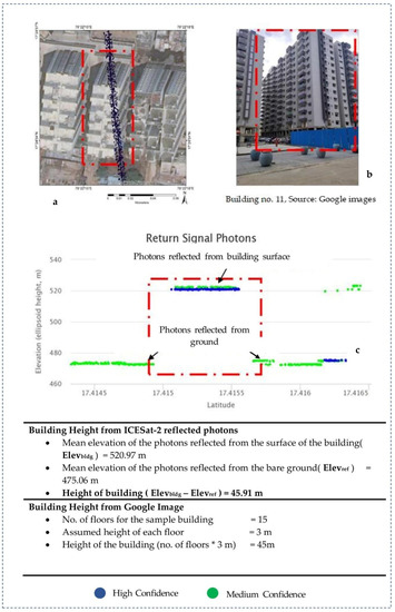 - Dandabathula, G.; Sitiraju, S.R.; Jha, C.S. Retrieval of building heights from ICESat-2 photon data and evaluation with field measurements. Environ. Res. Infrastruct. Sustain. 2021, 1, 011003. [Google Scholar] [CrossRef]