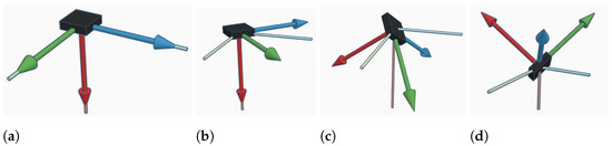 Figure 1. Test rotations and orientations: (a) starting orientation, (b) first rotation, (c) second rotation, (d) third rotation.