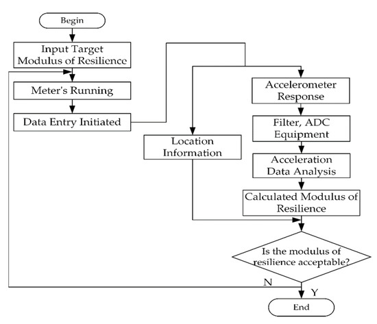 Before compaction, the target resilience modulus value should be calculated in advance through an FWD (falling weight deflectometer) test in the compaction area [10]. Thus, we can compare the rebound modulus value which is monitored during the compaction process with the target modulus value to verify the compaction effect. Figure 3 presents the composition diagram of compaction evaluation analysis system.