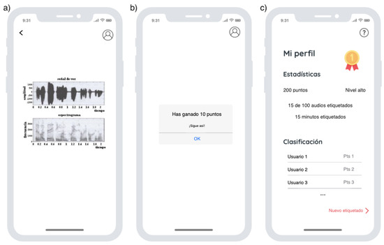 - The Listen Game [15]: an application to tag entire audio recordings, playing simultaneously against multiple players. The process begins with all players listening to the audio recording, selecting from the labels shown on the screen whether they are “good” or “bad” sounds and obtaining feedback on their selection compared with the other players, adding points according to the coincidences between them. Firstly, seven rounds are played, followed by a freestyle round where the player enters the word that best matches the sound heard. In the next round, this word appears as an option among those chosen by the system. Finally, every eight rounds a score summary and various statistics are shown.
