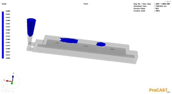 After starting the simulation, the ‘Visual Viewer’ module opens, where the filling process can be observed at any moment during the simulation (Figure 7 and Figure 8).