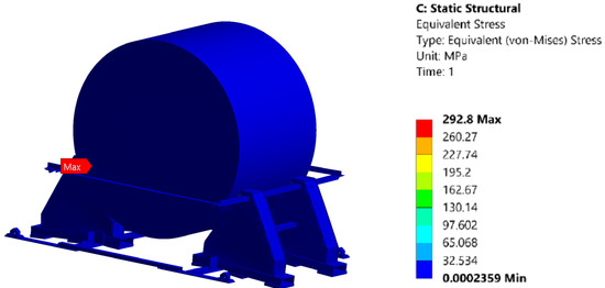 Figure 9 shows the result of a finite element analysis (FEM) of the securing structure for the cylindrical load under combined loads.