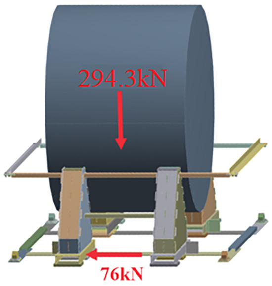 The next stage of the methodology is the determination of the loads acting on the securing structure during transportation. This is a fundamental stage in the design process. Dynamic driving conditions, such as acceleration, braking, and cornering, as well as external factors, such as vibrations from the road surface and weathering, generate forces that can compromise the stability of the cylindrical rollers.