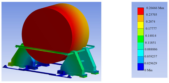 Finite element analysis of securing structure under vertical static load: total deformation distribution.