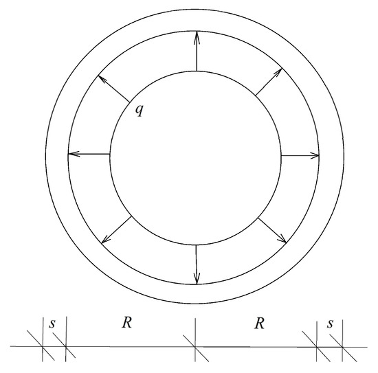 Figure 1 represents the cross-section of a pipe with radius, . The thickness of the pipe wall is where , i.e., the wall is thin. The pipe is subjected to a uniform internal pressure, . Since the wall is thin, the pipe essentially is under pure tension in circumferential direction.