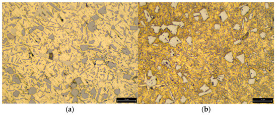The studies conducted on the two AlSi18Cu5Mg and AlSi18Cu3CrMn hypereutectic aluminium–silicon alloys found that heat treatment has a positive effect on both the primary and eutectic silicon crystals in their composition [48]. The measured microhardness values show that the alloys subjected to artificial ageing of a lower temperature and longer holding time exhibit a more supersaturated α-solid solution.