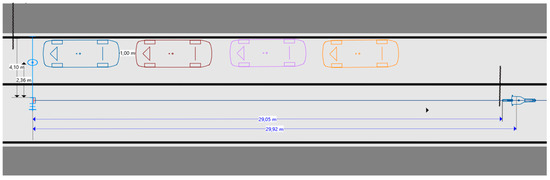 Two-dimensional top view, 3.755 s before the accident occurs under the conditions of Hypothesis 1.