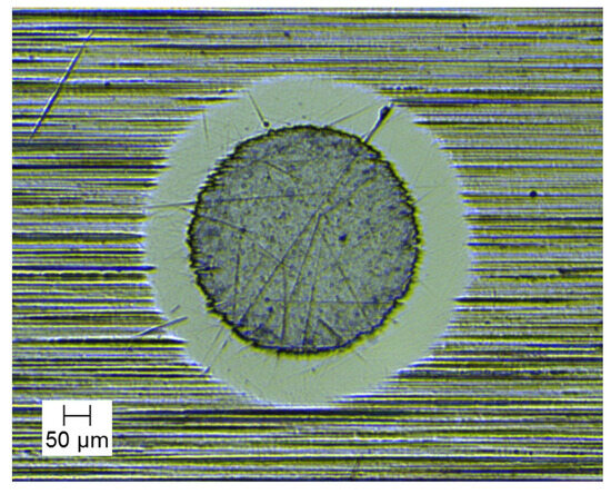 Figure 1 shows the spherical section from the measurement. From this image, organoleptically (evaluating the color), it could be concluded that the coating is over-stoichiometric. In the area of the section, any damages to the coating are not observed, which suggests relatively low internal stresses and good adhesion.