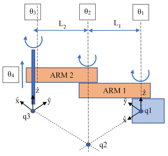 In this study, we consider only the position of the end effector and exclude its orientation, therefore we will only use Equations (1) and (2).