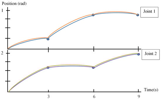 With respect to the positions of each of the joints during movement of the two systems in the following Figure 16, the recorded positions of each of the joints until the assignment is reached.