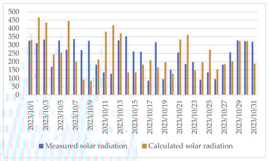 The present study concentrates on the autumn–winter period, encompassing October through December, as these months are known to exhibit increased variability in solar radiation due to shorter daylight duration, lower sun angles, and frequent cloudiness. Although longer-term (annual) data exist, the selected timeframe was chosen because it demonstrates the most pronounced deviations—both in absolute values and dynamic behavior—between simulation and reality.