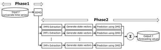 Based on the above considerations, we establish a forecasting process that combines Ensemble Empirical Mode Decomposition (EEMD) and Dynamic Mode Decomposition. The process, shown in Figure 8, consists of the following two phases.