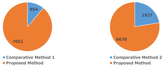 Figure 10 illustrates the comparison results of forecasting accuracy advantages in the dataset between the proposed method and each comparative method. The proposed method shows a greater number of advantageous parts compared to the comparative methods, with a ratio of part numbers of 8:1 between the proposed method and Comparative Method 1, and a ratio of part numbers of 7:2 between the proposed method and Comparative Method 2. The results suggest that the use of DMD and EEMD can enhance forecasting accuracy across various demand patterns for different individual parts. Meanwhile, the number of service parts that achieve better forecasting accuracy using the comparative methods implies that there are some demand patterns in which the proposed method is not superior to the others.