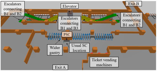 - Since SC facilities in these studies tend to be bulky, the locations for SCs are usually fixed (at station entry points). There is one recent study [7] that considered moving SCs from the station hall to the entrance channel, which is sufficiently long for congestion prevention. However, this might not apply for stations without long entrance channels.