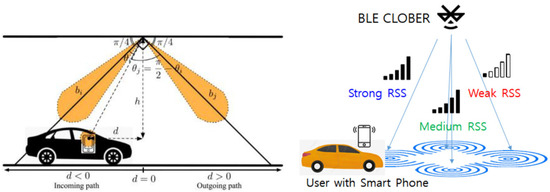 To solve these issues, a new GNSS shadow road radio positioning technology named CLOBER (Cross-shape LOcation BEacon Radio) using MD (multidirectional) BLE beacon signals has been proposed [3,4]. By radiating BLE beacon channel signals with different IDs in two or four directions, it can solve the problems of interference between beacon signals and the channel model issues in RSS (relative signal strength) of existing BLE positioning technologies. A positioning system using this BLE CLOBER has been developed and commercialized as an indoor parking lot vehicle navigation and parking route guidance system [5].