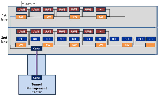 In outdoor environments, GNSS (Global Navigation Satellite System) is commonly used to provide various location-based ITS (Intelligent Transportation System) services such as vehicle navigation to guide driving routes to destinations, detection and warning of unexpected situations ahead, and guidance at entry and exit points, as well as precise navigation services for autonomous vehicles [1]. However, in GNSS shadow roads such as tunnels and underground highways, it is difficult to provide these services due to the inability to obtain accurate location information. Particularly in the case of GNSS shadow roads, additional services such as location-based evacuation route guidance are of significant importance due to the high fatality rate in the event of an accident on those roads. Moreover, with the rapid expansion of tunnel road construction and the construction plans for underground highways in Korea, the need for radio positioning technology in GNSS shadow roads has become increasingly important to provide accurate vehicle navigation and various location-based ITS services.