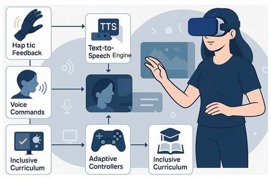 Inclusive learning environments address disparities arising from unequal access to technology, cultural insensitivity to content, and learning barriers faced by students with disabilities. Personalized and adaptive tools significantly enhance learning outcomes, particularly in diverse classrooms [2]. However, disparities in access to digital tools persist. Figure 1 illustrates a global classroom that integrates accessibility features (e.g., screen readers and adaptive assessments) to improve learning outcomes for students with disabilities. Global classrooms face the following challenges [3].