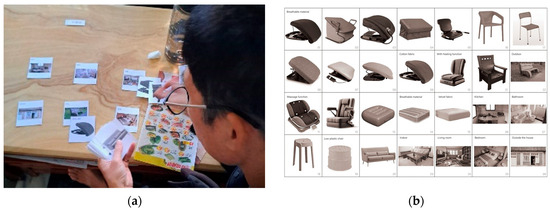 We collected commonly seen images of assistive seat cushions from online shopping platforms (e.g., Amazon). To better reflect real-life usage scenarios, the collected images included chairs used with cushions for different uses. According to the study’s constraints, all images were standardized by presenting the cushions at a 45-degree angle, removing backgrounds, and desaturating the colors to create uniform research cards. To ensure the representativeness and diversity of the images, a preliminary selection process was conducted. One expert with 10 years of industrial design experience and three graduate students from an industrial design program eliminated similar assistive cushions to maintain the uniqueness of each sample and evaluated the images. The final selection comprised 28 images, as shown in Figure 2.