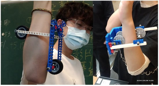 Students understood the principle of the four-bar linkage mechanism, which served as the basis for the design of the tree-climbing mechanism in the final exam. Working in groups, students used Lego Technic bricks to complete the creation of five four-bar linkage models and carry out discussions and manufacturing within three hours (Figure 2). They conducted computer-simulated practical operations.