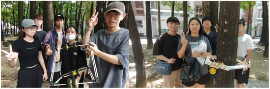 In the final exam, students carry out the practical production and verification of the tree-climbing mechanism and conduct on-site tests to measure the effect of the tree-climbing mechanism (Figure 6).