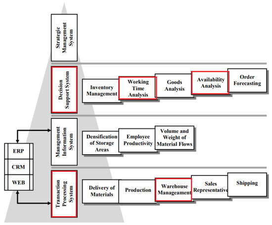 Although the system operates mostly within the operational and analytical scopes of the lower and middle layers, it does not extend to the second layer (management information system), where the focus is on tactical planning such as inventory levels or employee productivity metrics at an aggregated scale. Likewise, it does not reach the strategic management system (fourth level), which deals with macro-level tasks like network optimization or market expansion strategies.